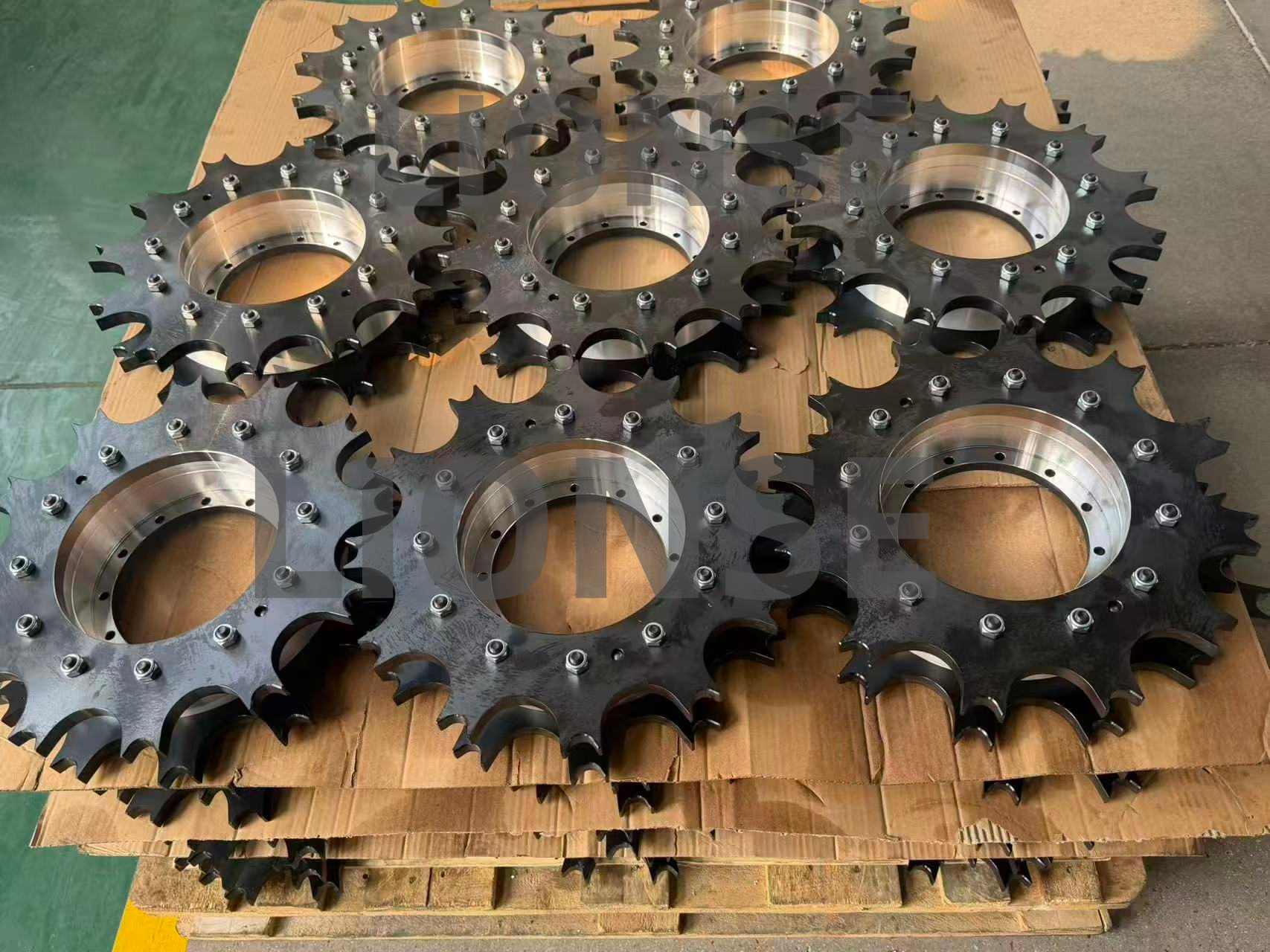 Secundum processum fabricandi, primo, ferrum plasticum est sub alta pressione deformatum a praecisione cudendi, ut structuram internam emendare, defectus eliminare, ac densitatem et proprietates mechanicas partium augere; Deinde curatio scientifica caloris exercetur, exstingui ad aequabilem duritiem in superficie et intus ferri, et temperare ad tollendam vim restinguendam et duritiem componendam, ad meliorem aequilibrium inter robur et duritiem assequendum. Denique summus praecisio instrumenti machinae CNC adhibetur ad faciendam conversionem, milling, artem et alios processus in calore tractandi rotae centrum vestis, et stricte moderari accurationem curare, ut dimensional tolerantiae et figurae positio tolerantiae occurrat magno vexillo, altae praecise conventus exigentiis sprocket et vecte, ac accurate dimensiva accurata et bona superficiei asperitas.